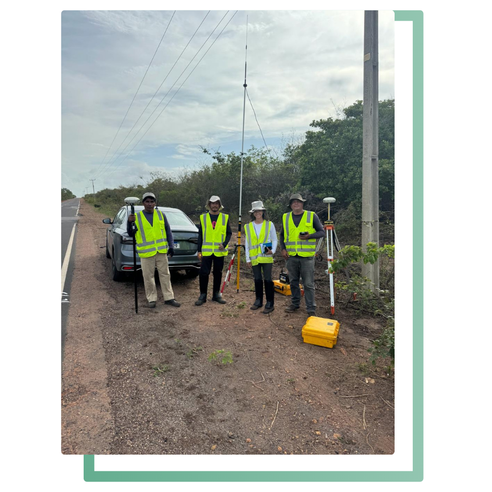 Levantamentos, locações de eixos, fundações, off-sets, níveis, pontes, viadutos, dispositivos de drenagem, amarração e posicionamento de projetos.